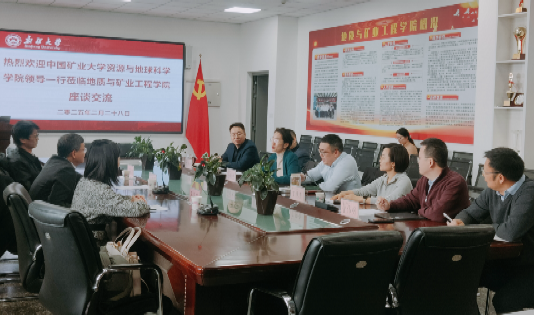 2月28日,中国矿业大学资源与地球科学公司党委书记熊志忠一行专程来公司座谈交流,亲送援疆干部杨海燕教授来公司工作,迎接援疆干部丁艳青教授援疆工作结束返回中国矿业大学。公司党委书记孙琳杰主持会议。